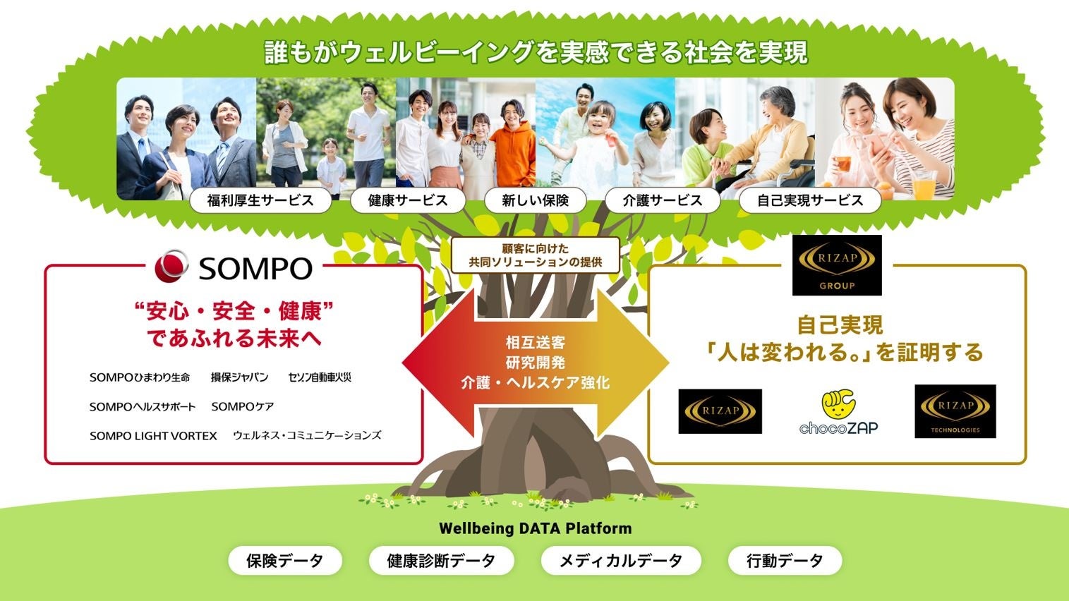SOMPOホールディングスとRIZAPグループが資本業務提携契約を締結 ~誰もがウェルビーイングを実感できる社会の実現に向け~