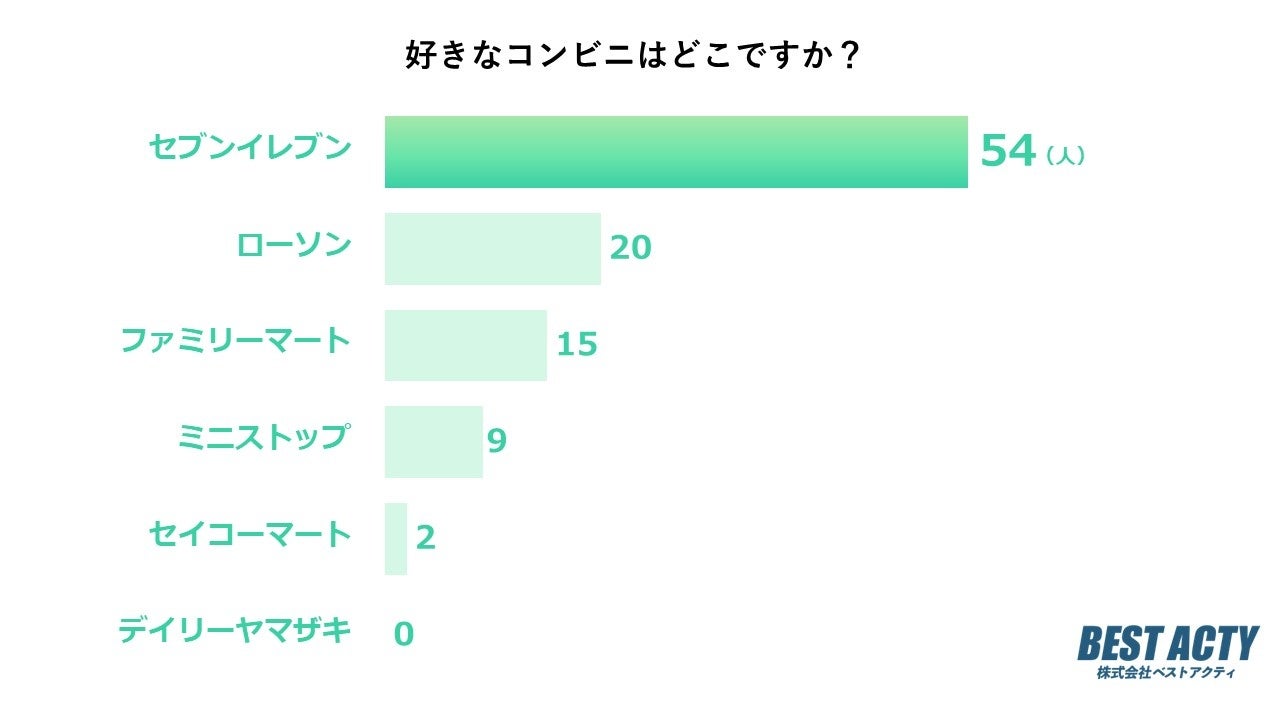アンケートの結果、「セブンイレブン」と答える人が最も多い結果となりました。