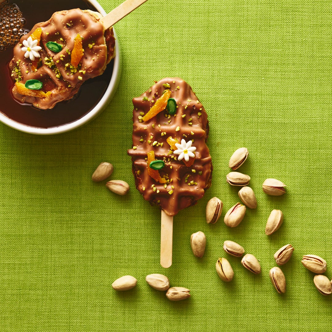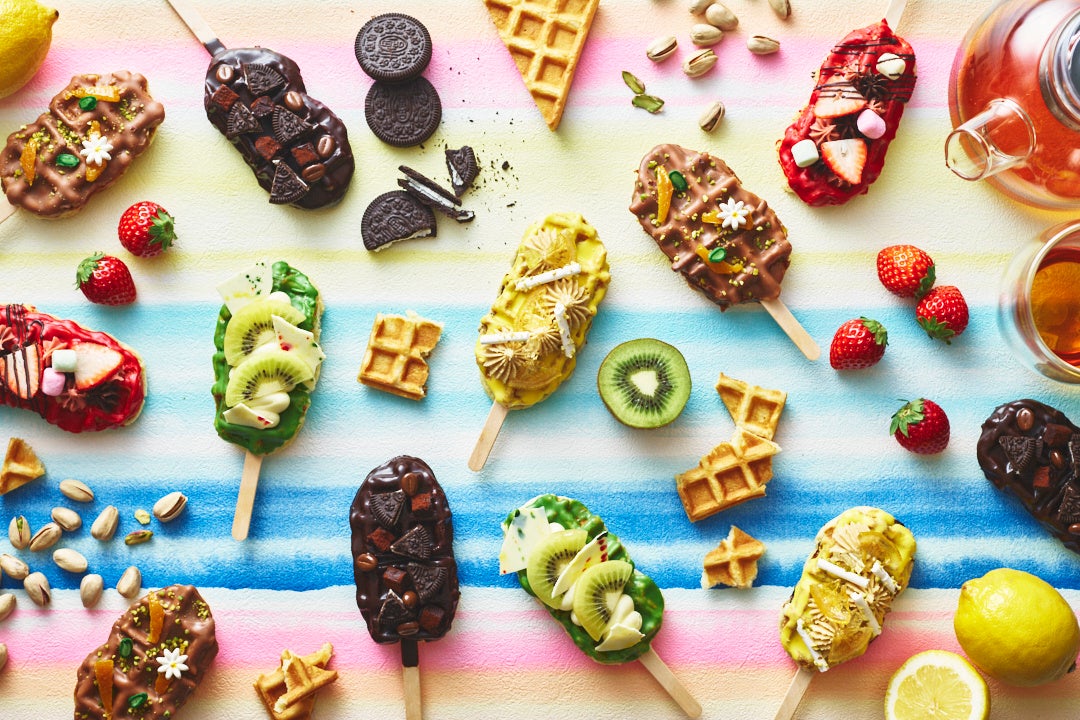 春の旬のフルーツや人気スイーツなどからインスパイアされた5種類のワッフルを、遊び心感じるロリポップスタイルでご用意します。春に旬を迎えるキウイとホワイトチョコレートのコンビネーションや、いちごと自家製ルバーブジャムを合わせた甘酸っぱいフレーバーなど、カラフルな見た目だけでなく、味わいのサプライズも楽しんでいただけるワッフルに仕上げています。