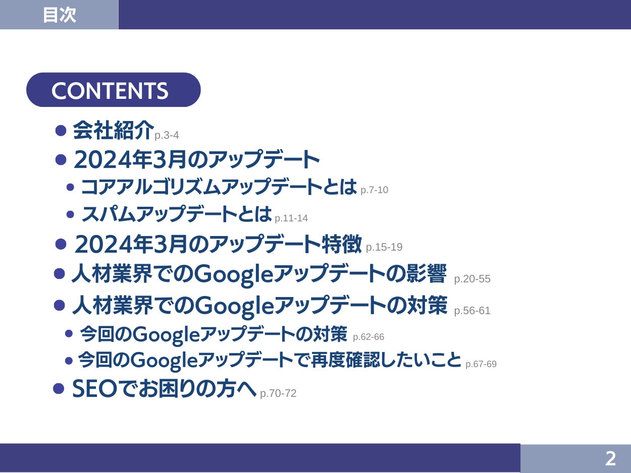 今回のGoogleアップデート分析レポートのトピックは下記の通りです。