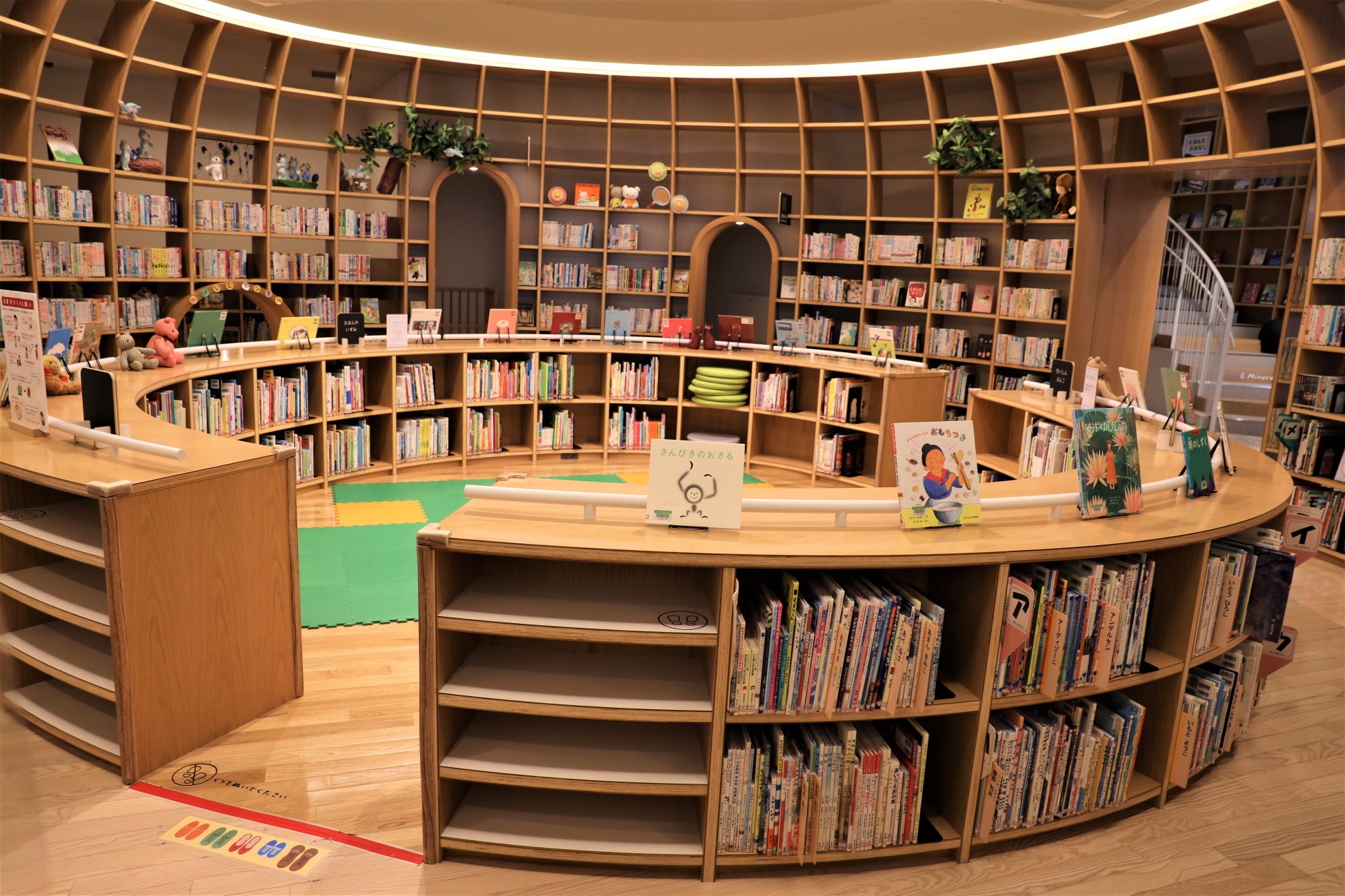 カフェ併設、親子スペースも充実。幼児向け「こどものもり」、児童向け「まなびのもり」で親子時間を楽しめる「森」のような図書館
