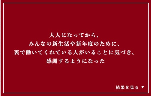 “大人になってから、みんなの新生活や新年度のために、裏で働いてくれている人がいることに気づき、感謝するようになった“等 全12選