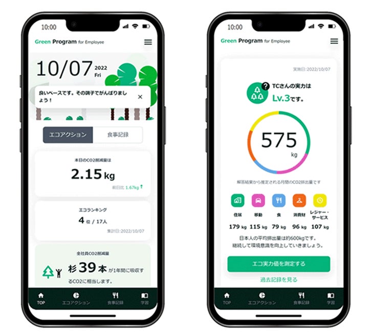(日々のエコアクションによる CO₂削減効果の可視化やエコ実力値の把握が可能)
