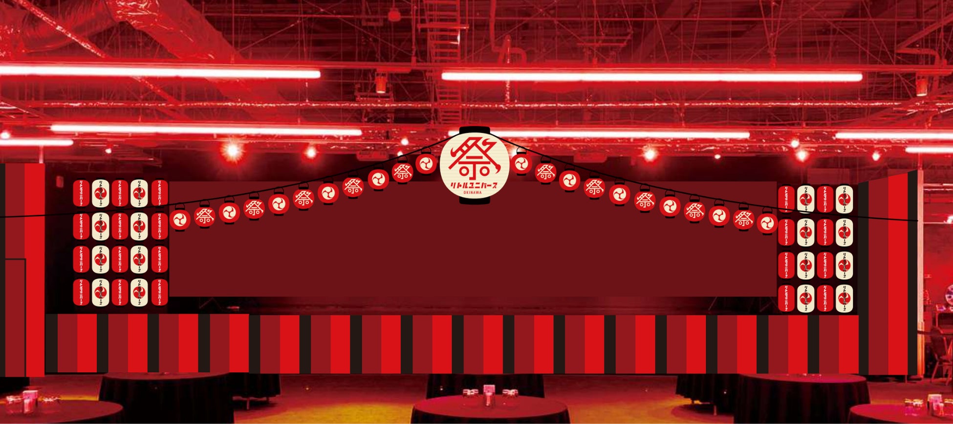 提灯の灯り、太鼓の響き、ざわめきとともにくぐる「祭門」が非日常への扉となり、来場者を祭りの世界へと誘います。