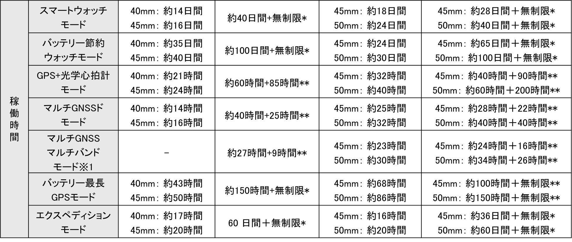 ・Dual PowerモデルはGarminの新しい第3世代ソーラー充電技術の採用で、充電効率・吸収率が大幅に向上。50mmディスプレイモデルの場合、GPSモードでバッテリー約60時間に加えソーラー充電で約200時間※と無限大のバッテリー性能を実現しています。ソーラー充電パネルの進化とモノクロMIPディスプレイも反射と透過のコントラスト比の改善により、視認性も大幅に向上。
