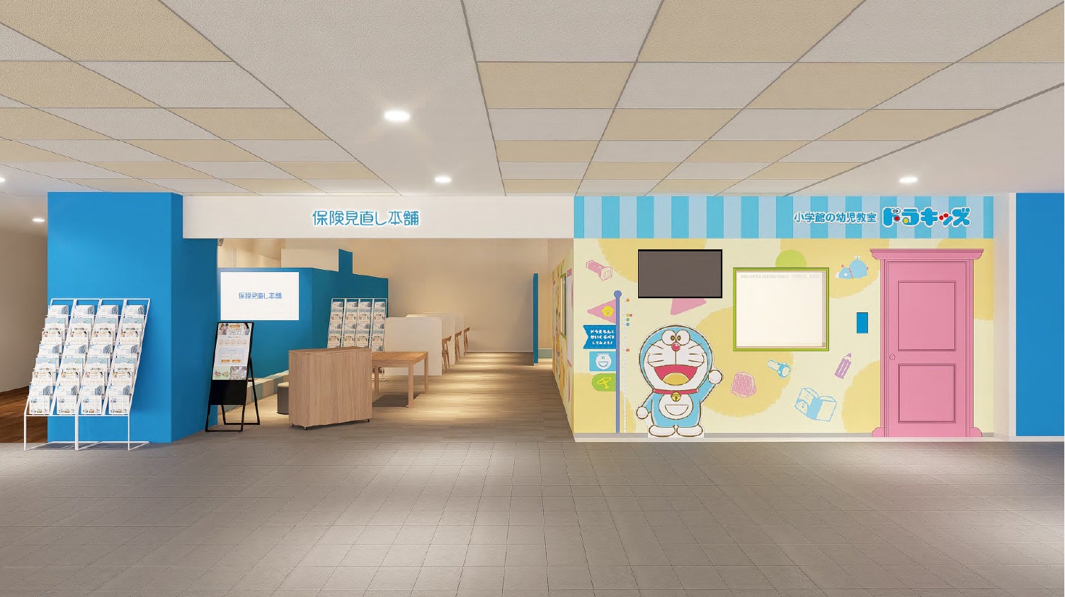 当店では、保険相談をご利用いただく子連れのご家族が「ドラキッズ」の魅力を体験できるよう、店舗限定の特別なノベルティ配布やイベントの実施も予定しています。また、店内には「ドラえもん」のイラストがあしらわれた楽しく明るい内装を採用し、ご来店された方に楽しいひとときを提供します。