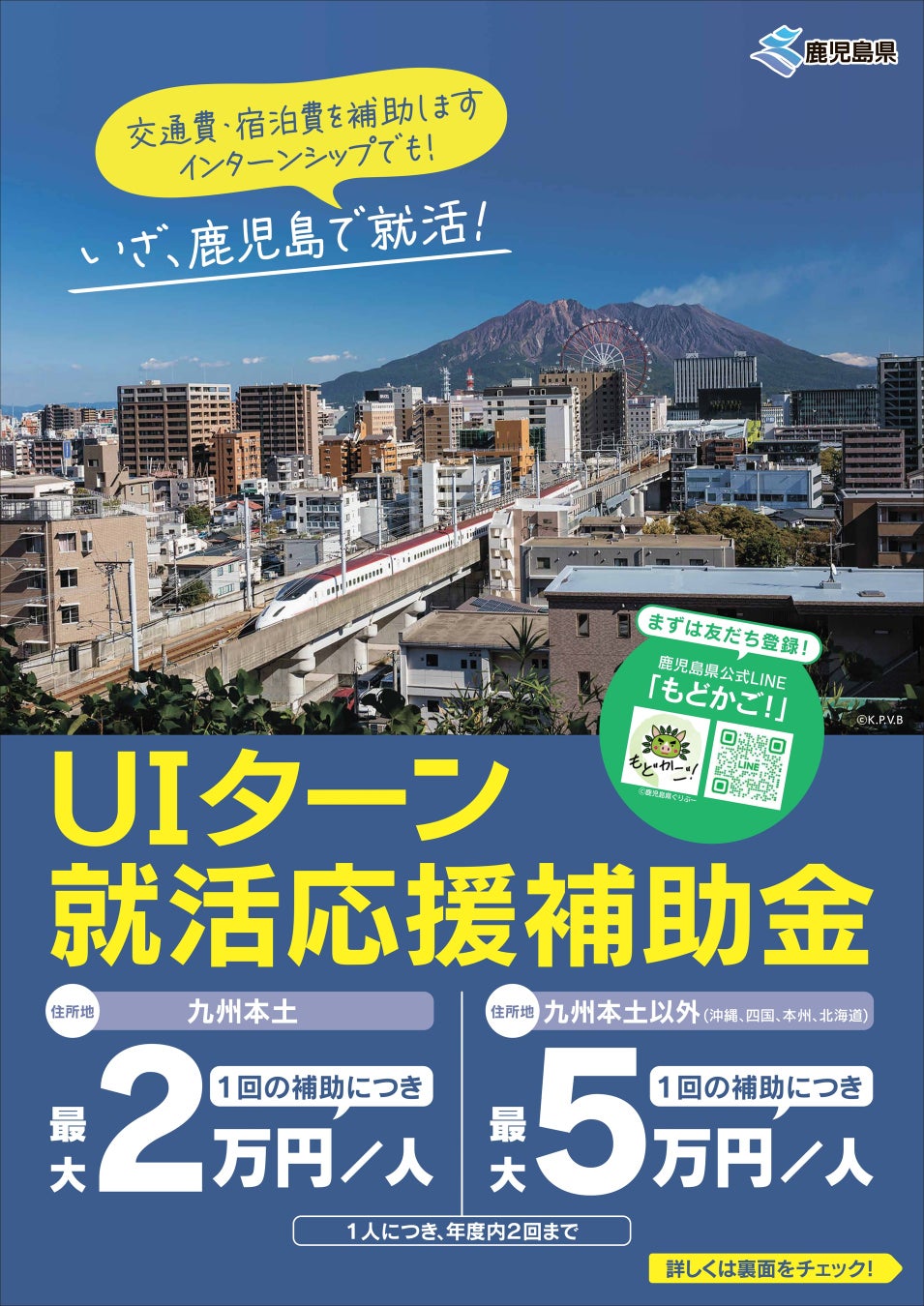 鹿児島県は、県外在住の大学生等を対象に県内での就職活動でかかった交通費・宿泊費を一部補助する「UIターン就活応援事業補助金」の申請を受け付けています。