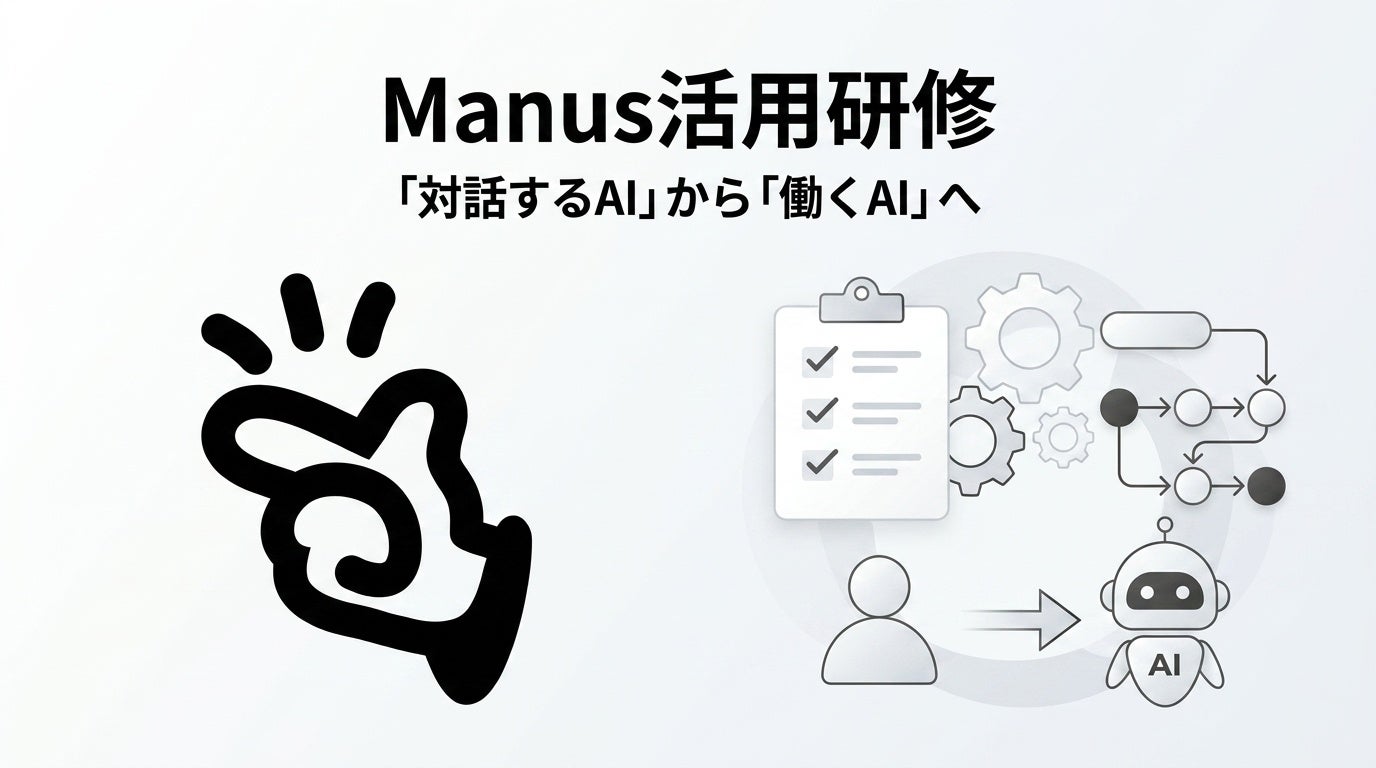 「対話するAI」から「働くAI」へ――業務タスクをManusに任せて担当者は意思決定に集中する実践型ハンズオン。人材開発支援助成金(事業展開等リスキリングコース)対応で実質負担1/3〜4割