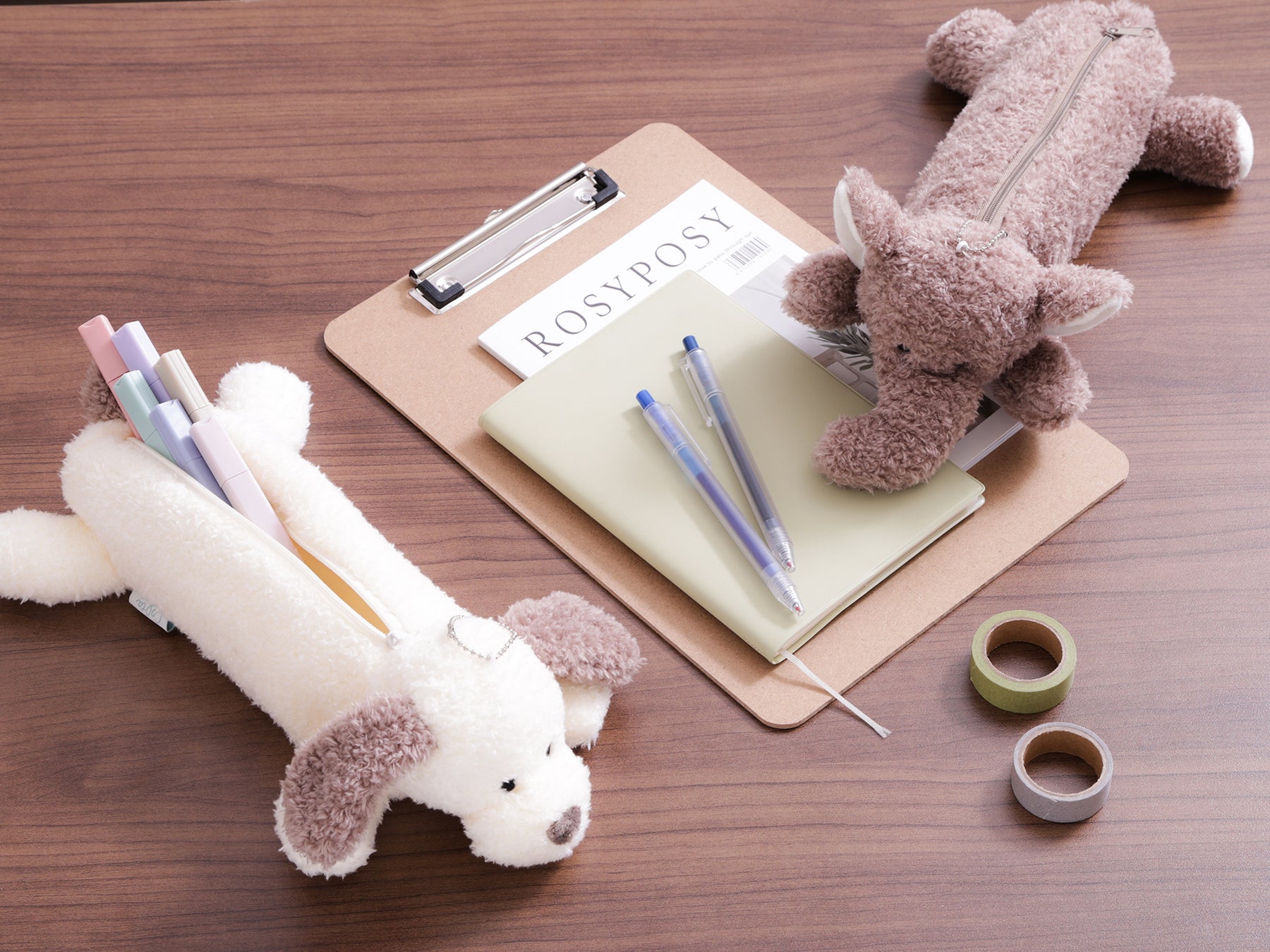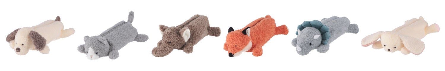 6種のアニマルたちがペンケース2サイズと巾着になって登場!