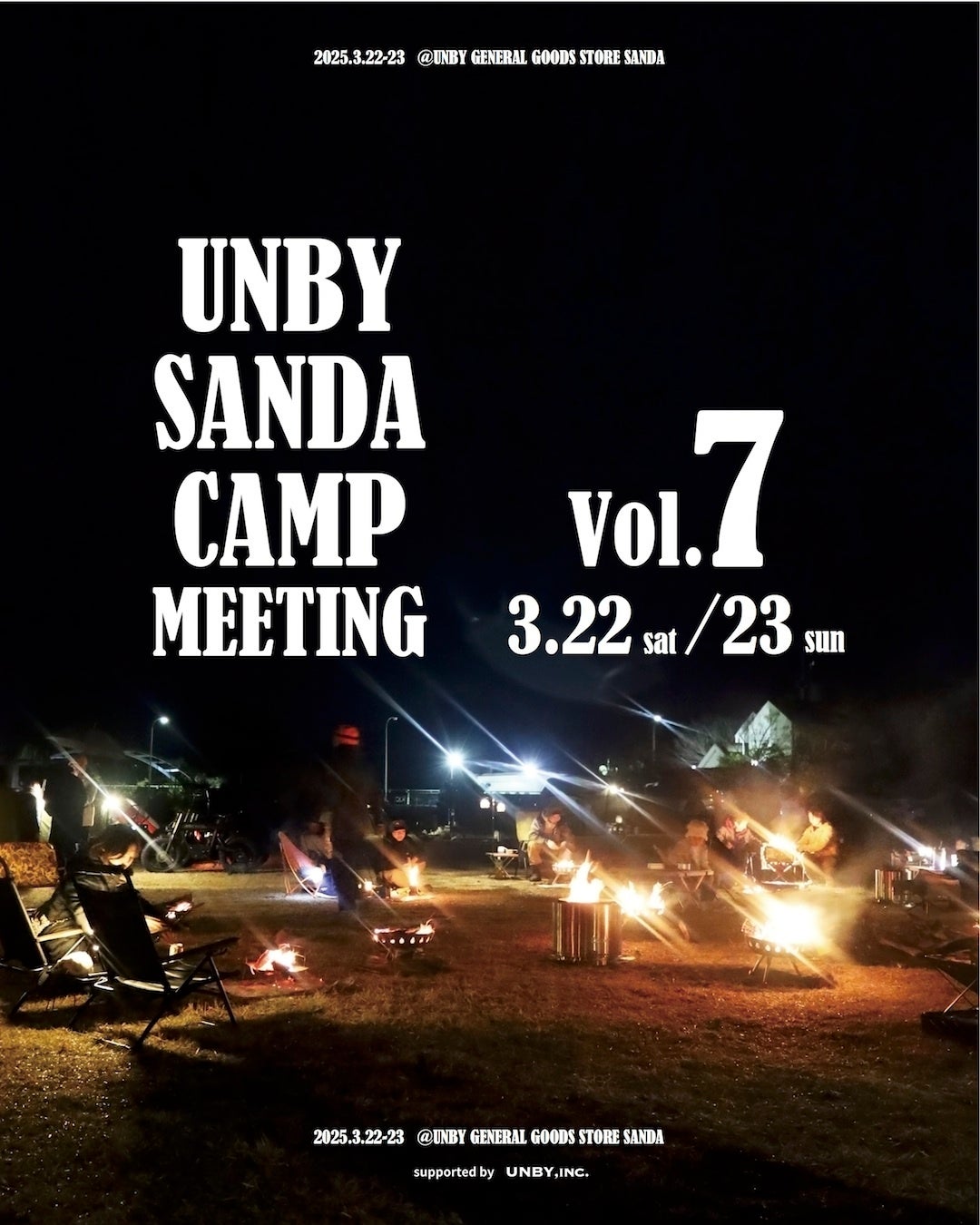 UNBY主催のキャンプミーティング「UNBY SANDA CAMP MEETING Vol.7」が3/22(土),23(日)に開催決定。参加受付は2/28(金)まで。