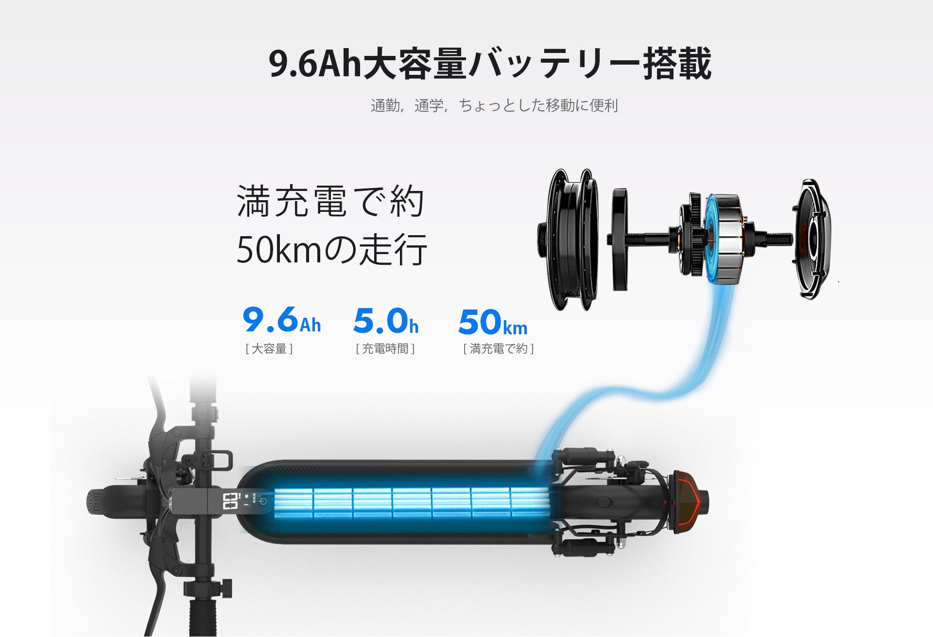 通勤通学やちょっとした移動に充分な走行距離を備えています。