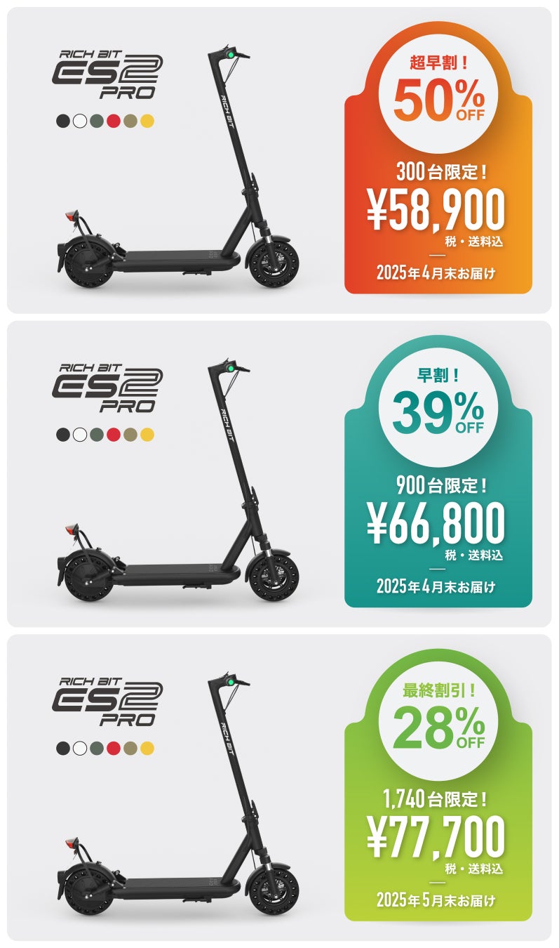 Acalieモビリティの集大成、国内累計販売台数12,000台以上、RICHBIT ES1 Proの上位機種ES2 Proが日本最安値58,900円(税込)から3,000台規模で先行応援販売スタート