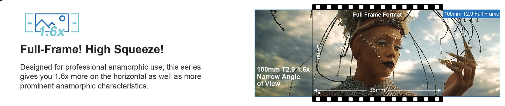プロフェッショナル向けに設計されたこのシリーズは、横方向に1.6倍の圧縮効果を提供し、アナモルフィック特性を一層際立たせます。