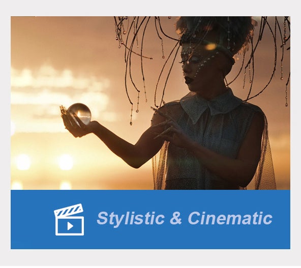 光源をレンズに当てることで、シネマティックな青いレンズフレアを生成します。また、1.6xの圧縮により背景の引き伸ばしが強調され、ボケ味がより細長くなります。浅い被写界深度により被写体が際立ち、映像に芸術的な深みと美しさを与えます。