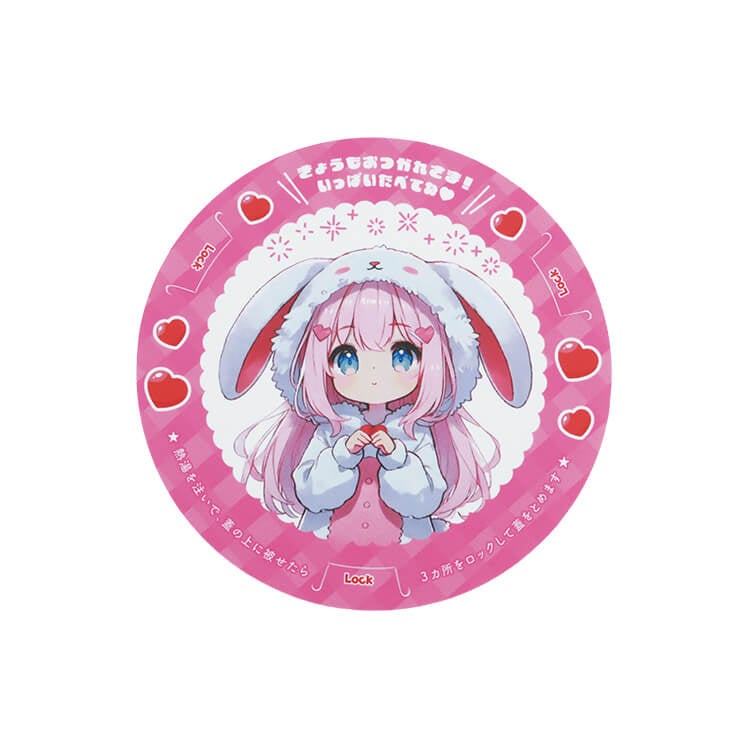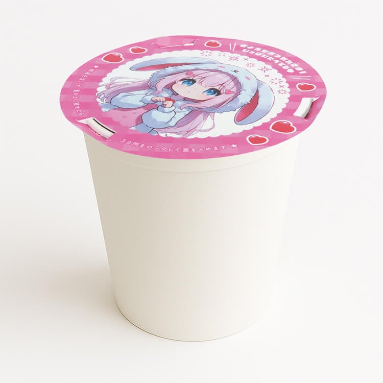 『カップ麺フタストッパー』は、カップ麺のフタを押さえる丈夫なPP製の便利グッズです。全面フルカラー印刷ができるため、コラボパッケージのデザインをそのまま活かしたグッズが作製できます。