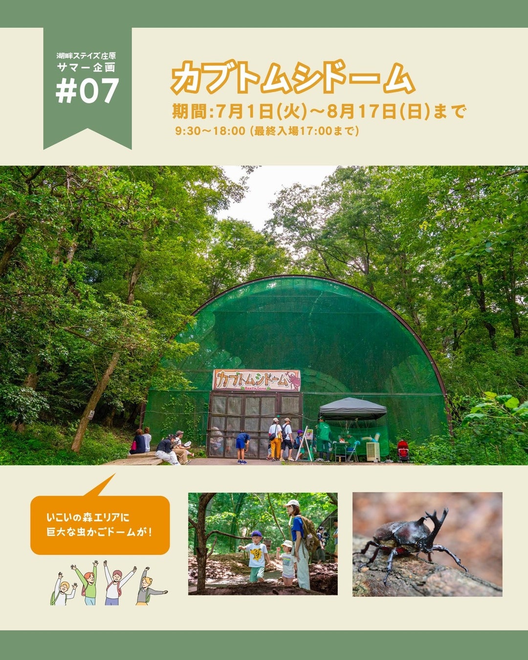 公園内「いこいの森」にある中国地方最大級のカブトムシドーム