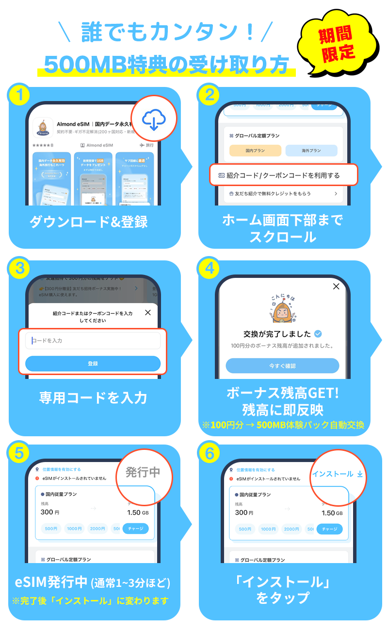 日本国内で利用可能な500MBデータ通信eSIM