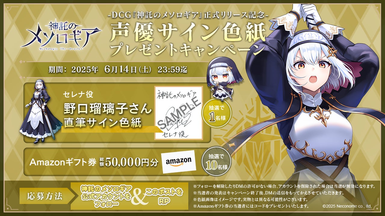 『神託のメソロギア』リリース記念── 豪華声優サイン色紙&Amazonギフト券が当たる公式Xリポストキャンペーン第7弾開催