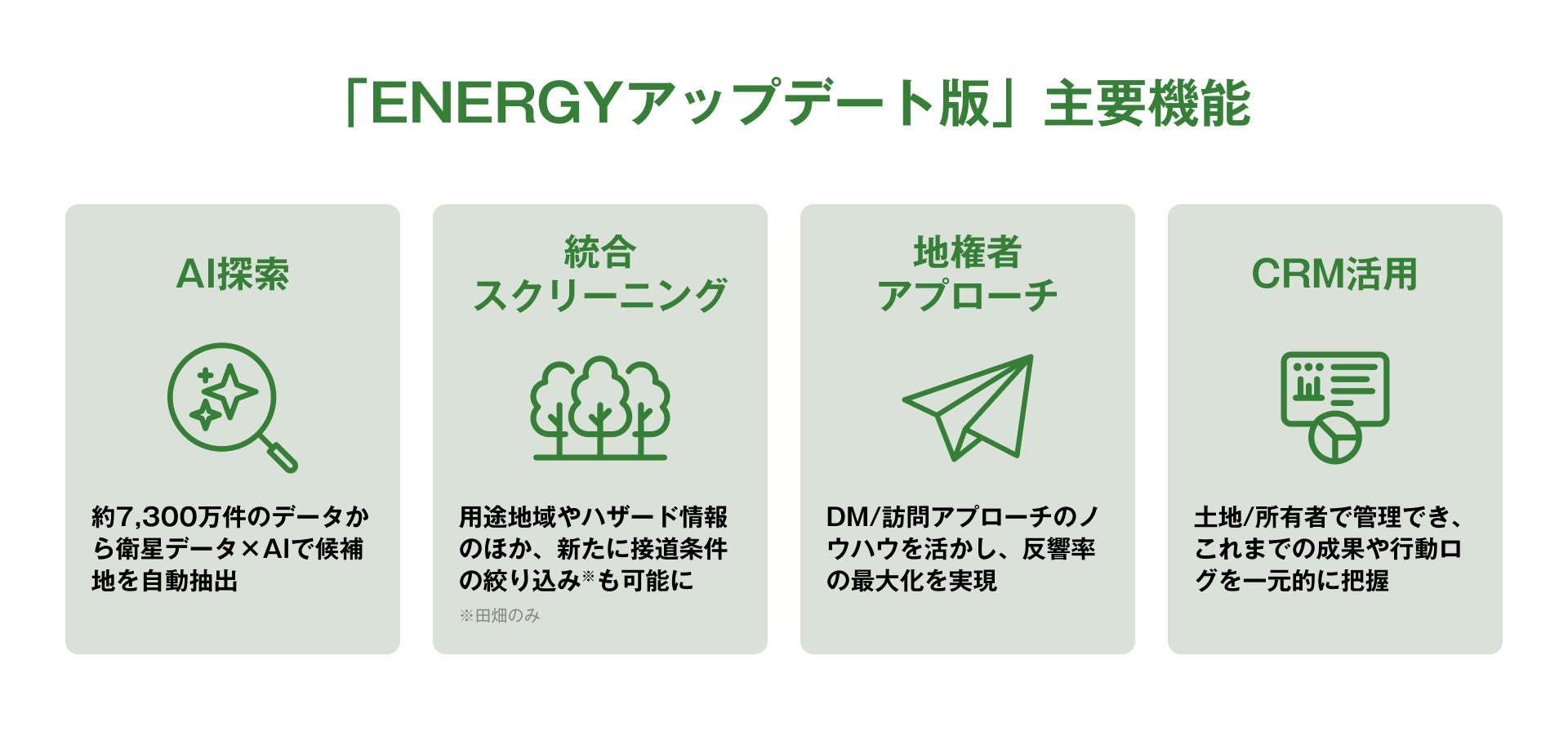 2025年10月の「ENERGYアップデート版」正式リリースから約半年での到達となります。今後も、適地の見極めから地権者との合意形成までを一気通貫で支援することで、地域社会と調和した再エネ開発を推進し、カーボンニュートラル実現に貢献してまいります。