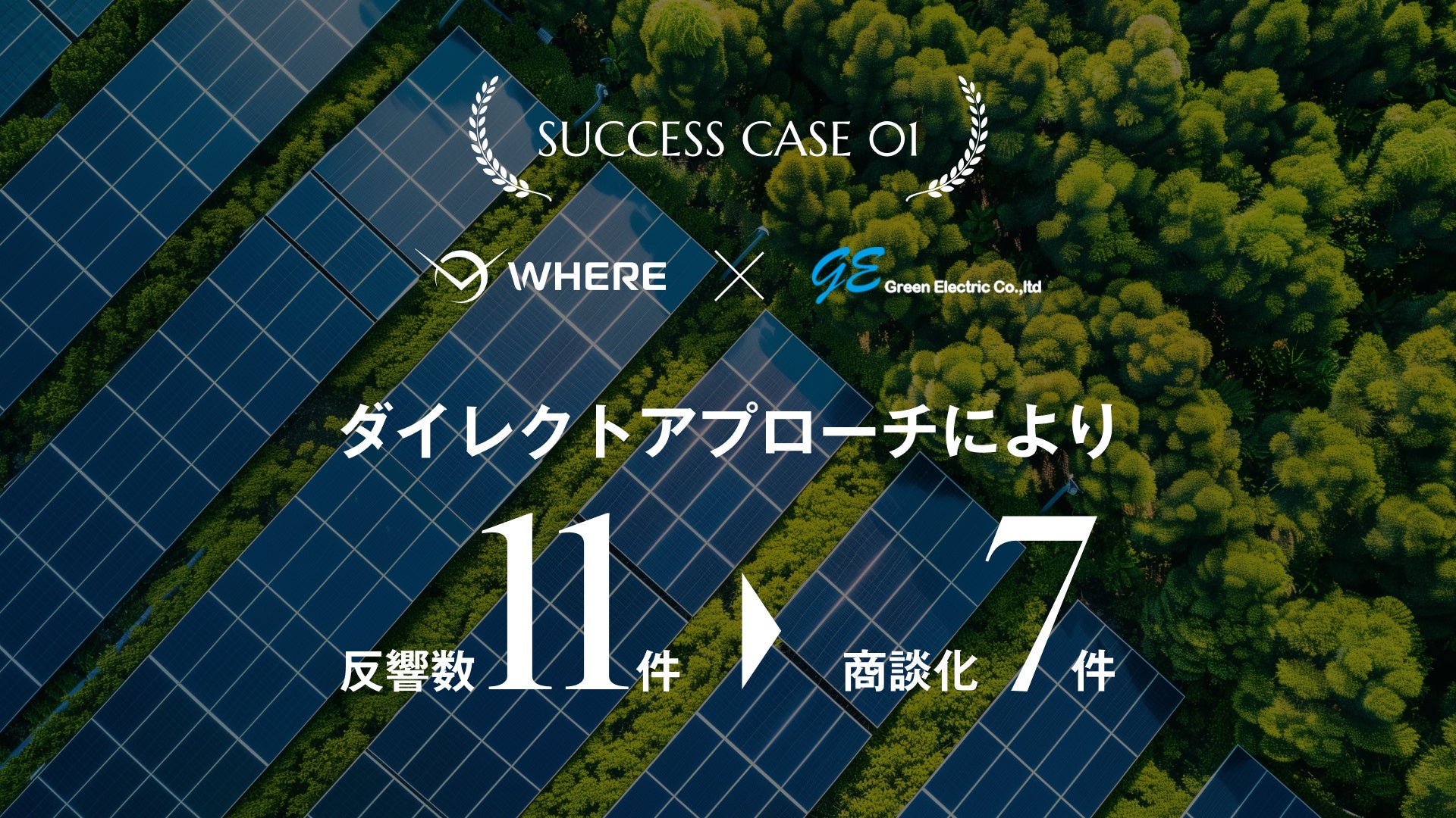 太陽光発電の設計・施工を手がけるグリーンエレクトリック株式会社は、自社での用地仕入れ体制の構築を目的に『WHERE』を導入。衛星データ×AIによる空き地や田畑の探索で全国の候補地をリストアップし、WHEREにて地権者アプローチを実施しました。