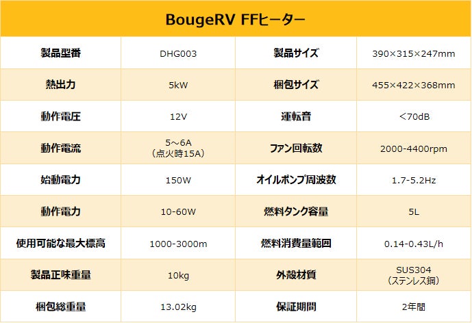 ■「BougeRV FFヒーター」について