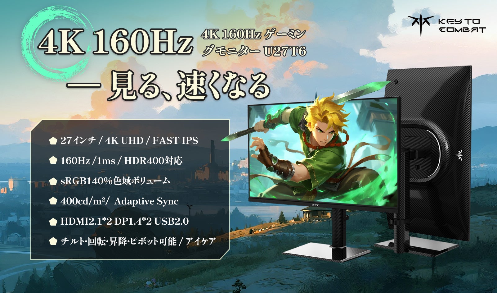 【4Kゲーミングの新基準】KEY TO COMBAT、27インチ4K 160Hz ゲーミングモニター「U27T6」を新発売!限時クーポンで至高の没入体験を提供