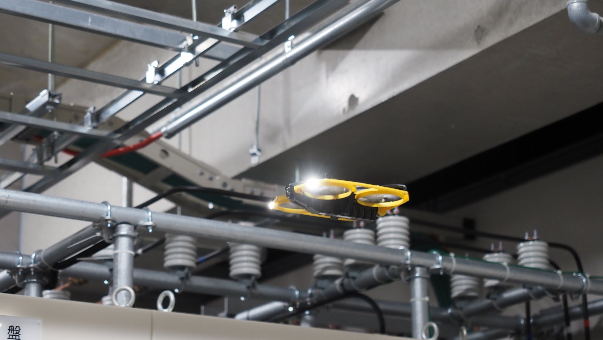 「狭くて、暗くて、危険な」かつ「屋内空間」の点検・計測に特化した世界最小クラスの機体です。「IBIS2」は、過酷な環境での飛行、安定した狭小空間での飛行、鮮明な点検映像の撮影が可能です。この街では、街全体を支える電気や熱供給設備の設備点検で活躍しており、省人化・省力化を始め街の発展に貢献します。