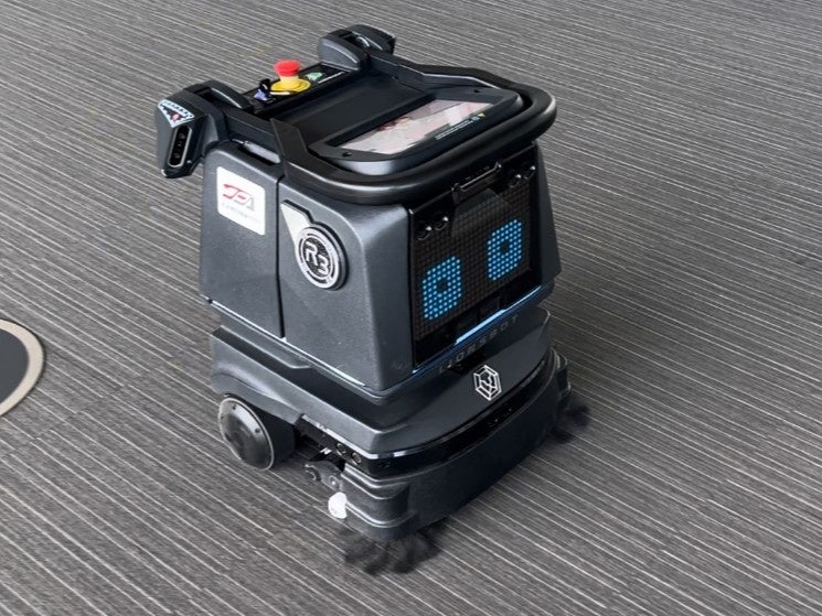 自動床洗浄ロボット「HAPiiBOT」は、広い石材などの床面を効率よく洗浄できるロボットです。広範囲の洗浄を得意としており、TAKANAWA GATEWAY CITYのような大規模施設では清掃スタッフの心強い味方となります。洗練されたデザインと高い洗浄能力により、お客さまに快適な空間を提供することが期待されています。
