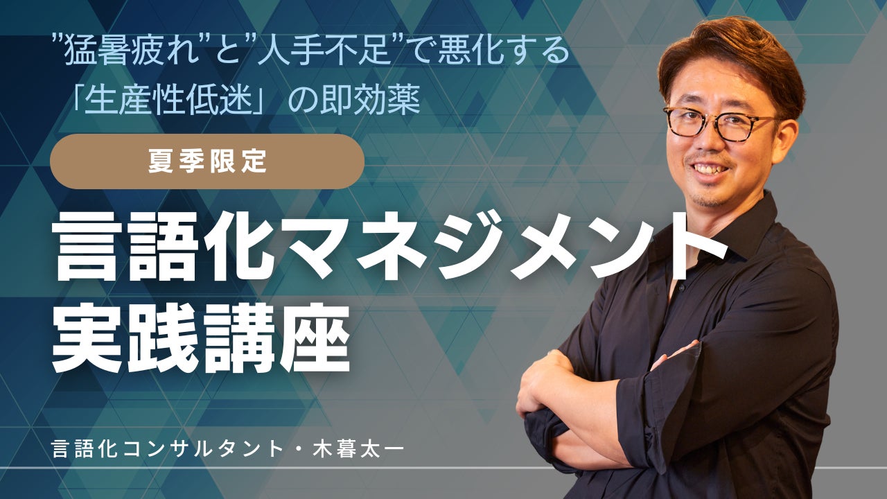 【夏季限定:言語化マネジメント実践講座】言語化コンサルタント・木暮太一による”猛暑疲れ”と”人手不足”で悪化する「生産性低迷」の即効薬