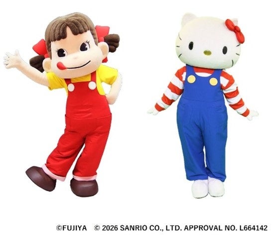 サンリオの人気キャラクター「ハローキティ」が遊びに来てくれます! ここでしか見られないペコちゃんとのコラボレーションもぜひお楽しみに!