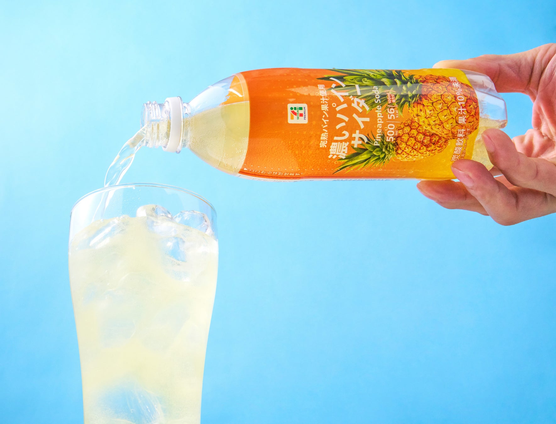 2020年6月に誕生した「濃いサイダーシリーズ」は、果汁とサイダーの甘さが絶妙に調和し、まるで果実をほおばったような味わいが特長の、セブンプレミアムの人気シリーズです。中でもパインサイダーは果実本来の味わいと高めの果汁率による濃厚な風味がお客様から高評価をいただきました。