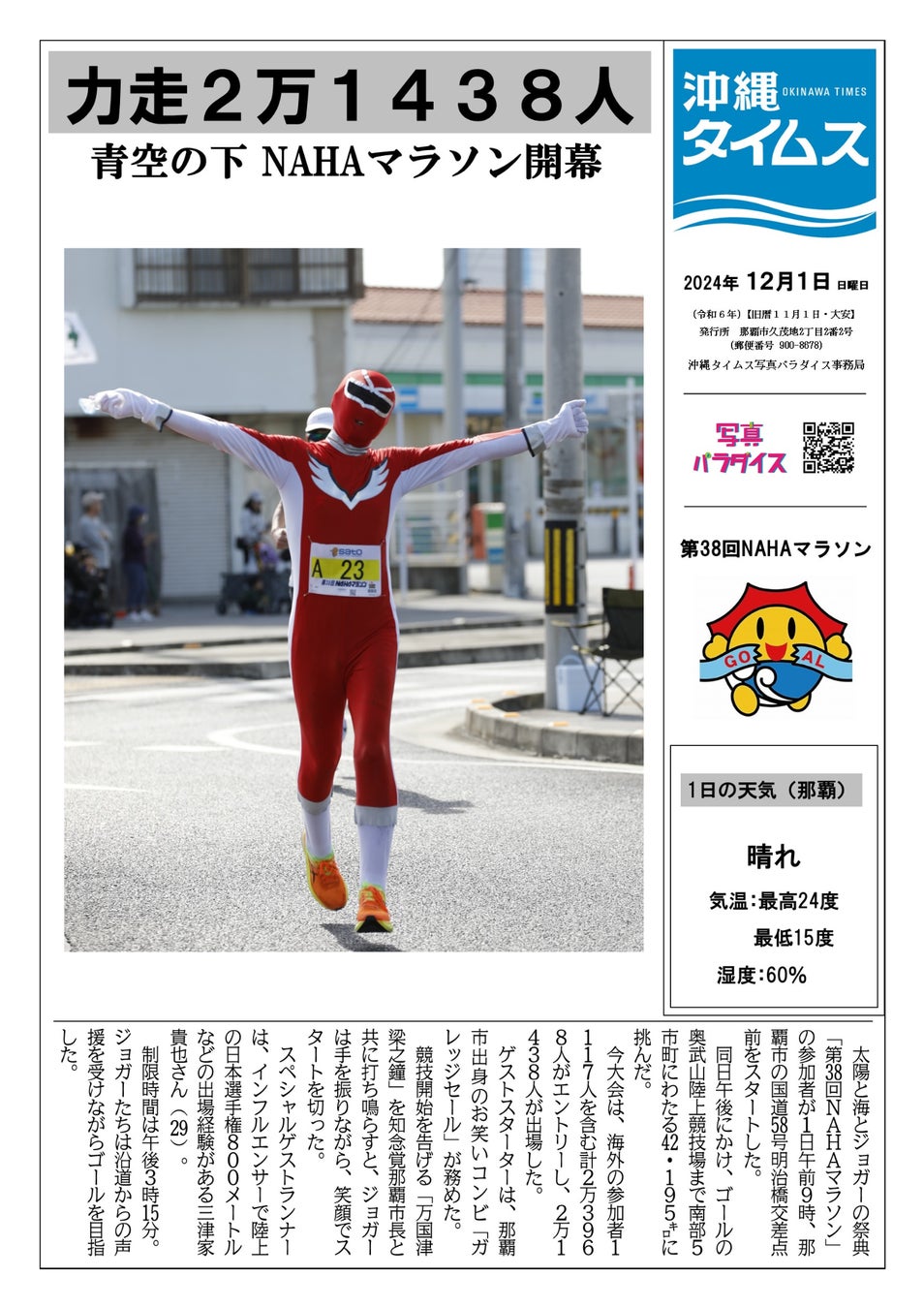 また、昨年ご好評いただいた「紙面セット」を今年も販売いたします。大会翌日の沖縄タイムス朝刊と全完走者名簿をセットでお届けします(郵送は日本国内に限ります)。