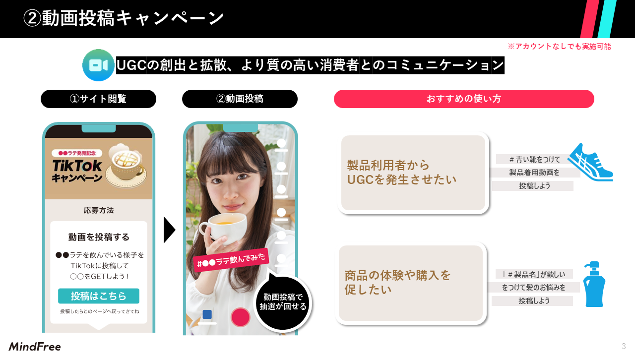 ②動画投稿型キャンペーン ※TikTokアカウントがなくても利用できます