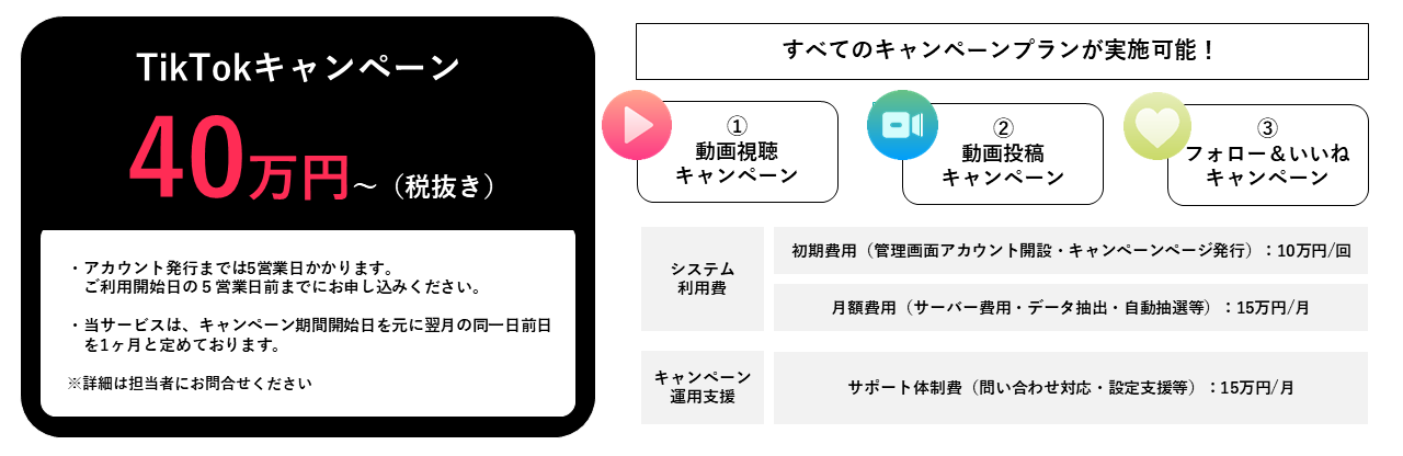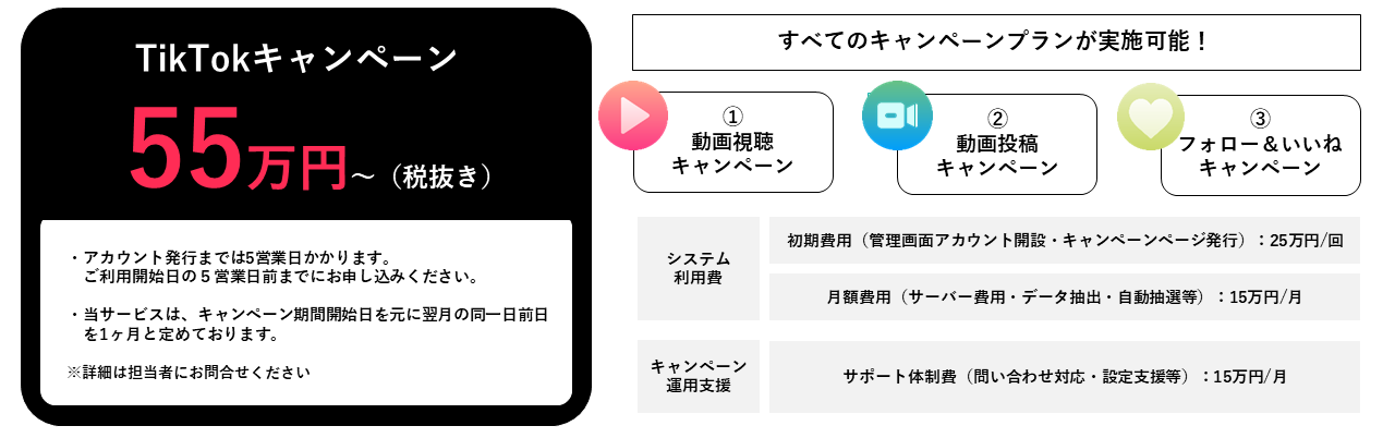 「TikQ」は、気軽にTikTokでキャンペーンを実施してみたいご担当者さまにおすすめのサービスです。