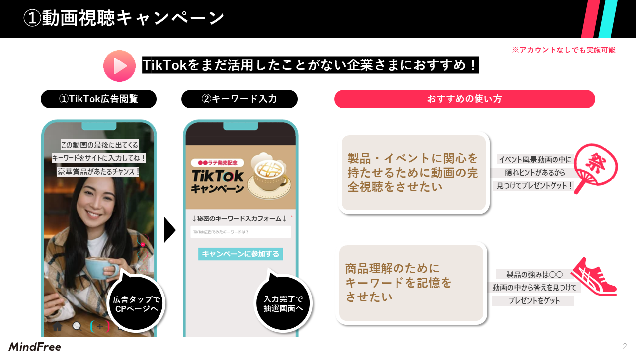 ①動画視聴型キャンペーン ※TikTokアカウントがなくても利用できます