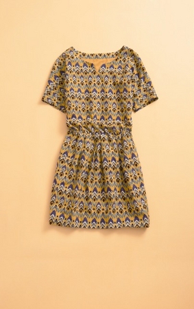 エスニックプリント ワンピース、ラインストーン付きバングル、