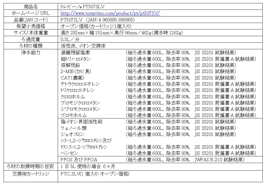 「トレビーノ®」は東レ株式会社の家庭用浄水器ブランドです。ポット型浄水器「PTシリーズ」をはじめ、蛇口直結型浄水器「カセッティ®シリーズ」「スーパーシリーズ」、アンダーシンク浄水器「トレビーノ®ブランチ」、浄水シャワー「トレシャワー®シリーズ」など、幅広いラインアップを展開しています。