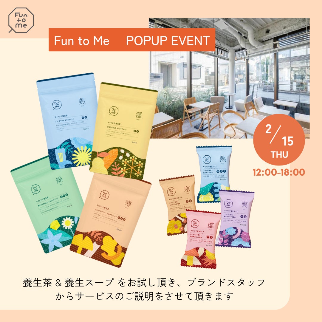 今回のイベントでは、「Fun to Me」のサービスの説明を担当者から直接お聞きいただけるだけでなく、養生スープと養生茶を試飲いただけます。参加費は無料で、どなたでもご参加いただけますので、ぜひお越しください。