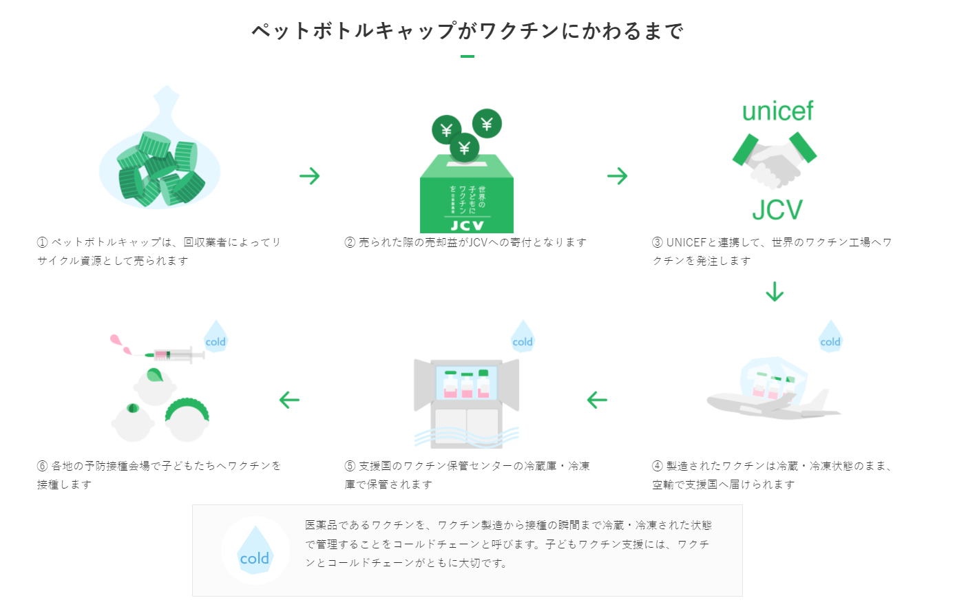【ペットボトルキャップ回収リサイクルによる子どもワクチン支援】
