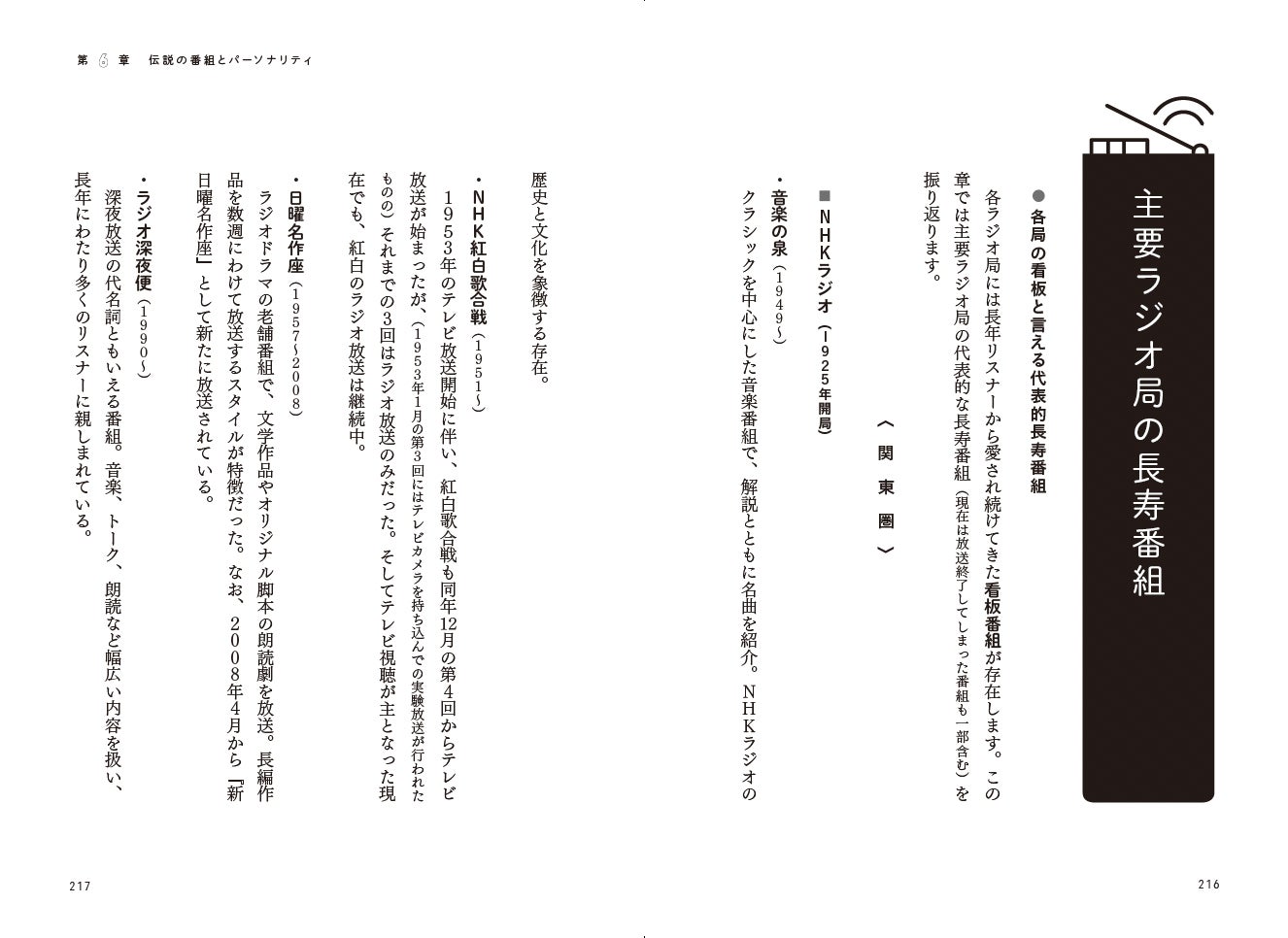 人気番組の制作者やパーソナリティのインタビューを介した「知られざる逸話」も紹介しています。