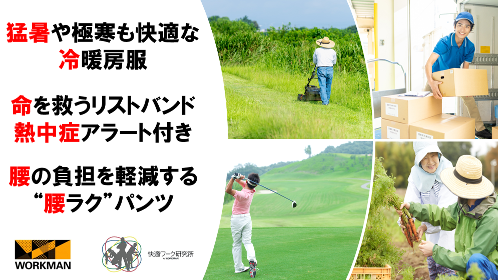 猛暑や極寒も快適な冷暖房服や腰の負担軽減“腰ラク”パンツなど多数。命を救う!熱中症アラート機能付きリストバンドも