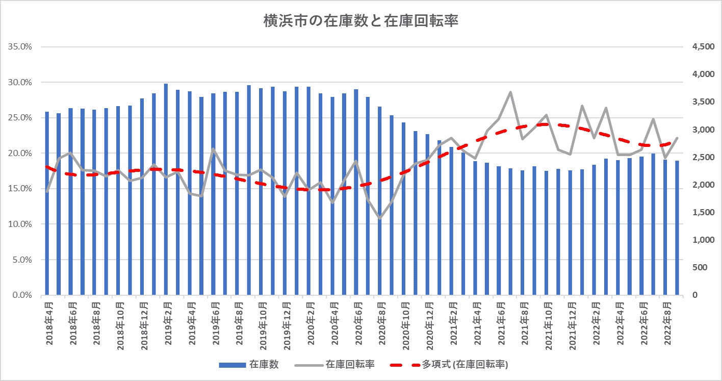 グラフ4:神奈川県横浜市の在庫数と在庫回転率