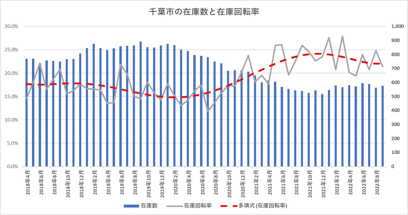 グラフ13:千葉県千葉市の在庫数と在庫回転率