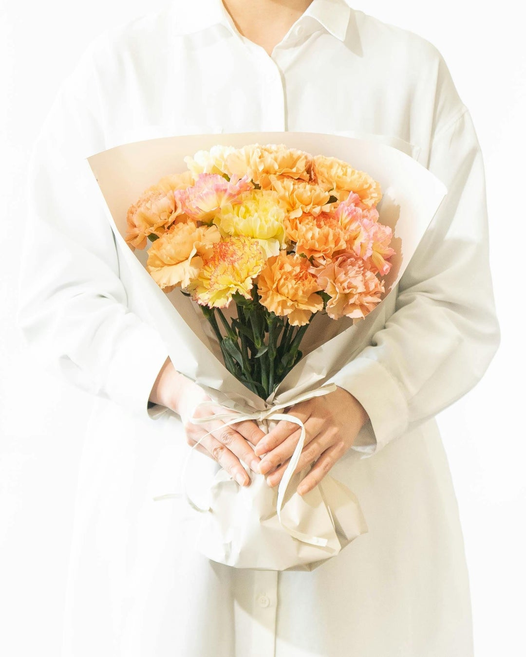 【母の日限定】産地直送 カーネーション花束 オレンジミックス(15本入り)/栃木 FloM carnation farmからお届け 5,280円税込