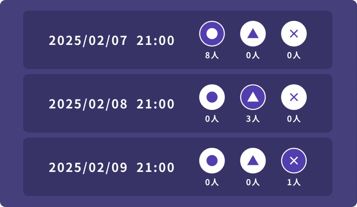 一緒にゲームを楽しみたいプレイヤーとのスケジュール調整ができます。チームの人数が足りないときはスペース内でメンバー募集も可能です。
