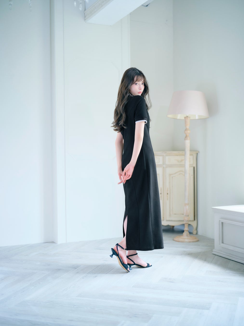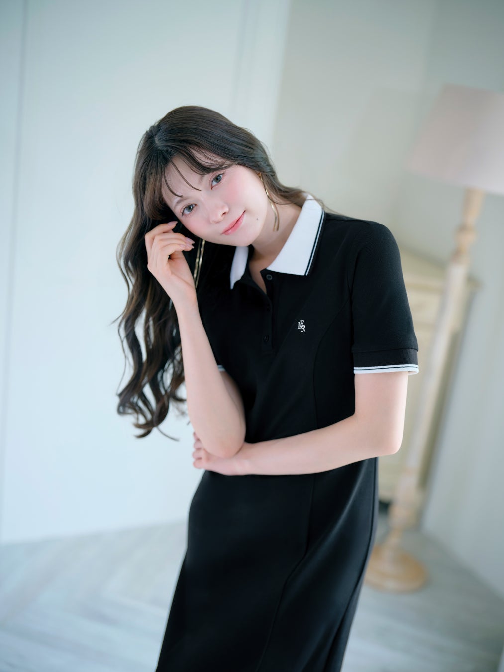 胸元のLouereオリジナルロゴ刺繍&襟と袖口のラインデザインがポイントの、 暑い夏にさらりと1枚でサマになる爽やかなポロワンピース。