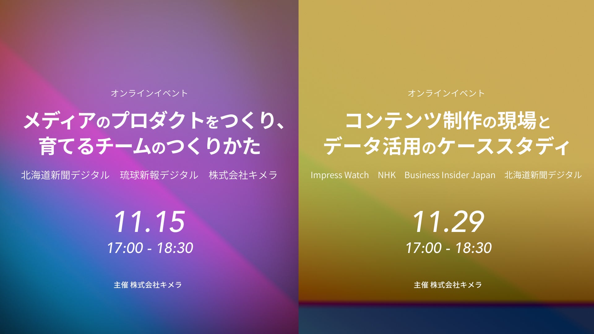 メディアの開発・運用現場のみなさんを迎えて11/15に「プロダクト開発」、11/29に「コンテンツ制作のデータ活用」をテーマにしたオンラインイベントを開催します