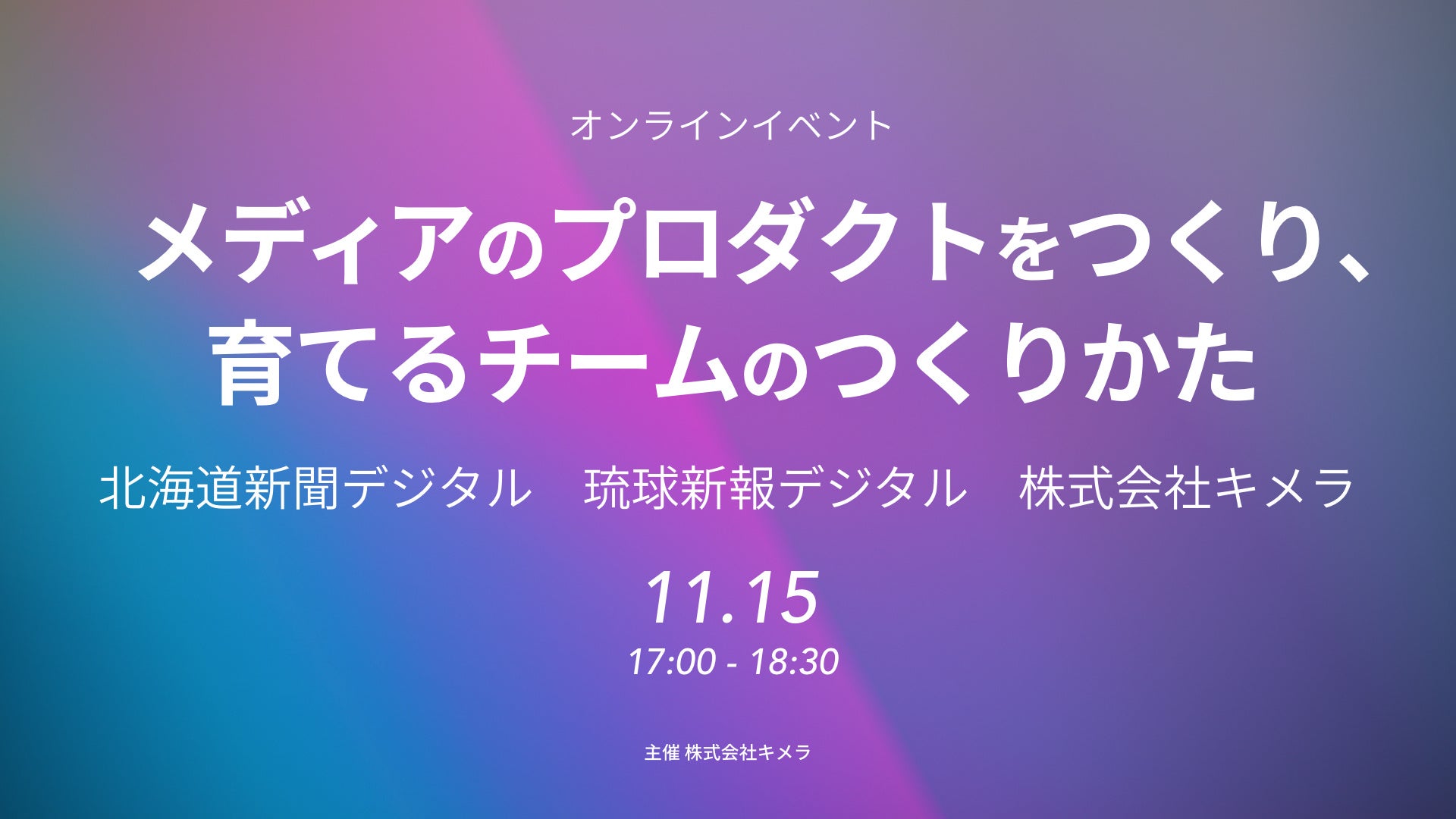 11月15日 - 北海道新聞と琉球新報を迎え、メディアのプロダクトをつくり、育てるチームのつくりかたを話します