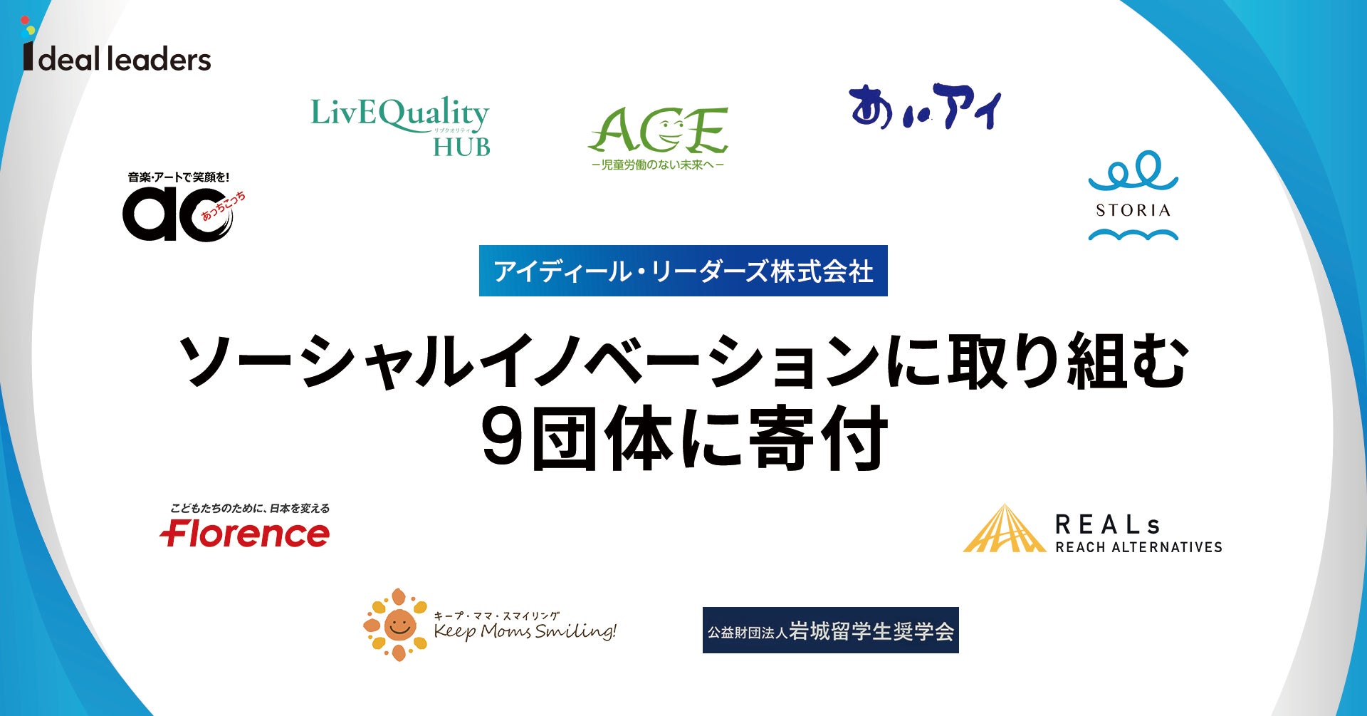 アイディール・リーダーズ株式会社 ソーシャルイノベーションに取り組む9団体に寄付