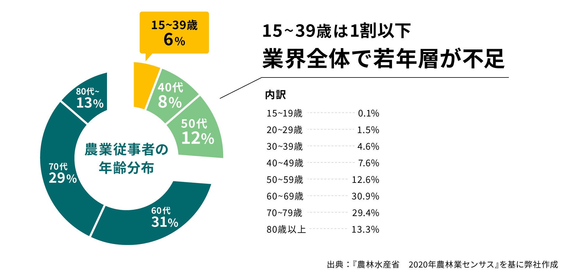 農業界の担い手不足問題では、「高齢化」「早期離職」の2つの要素が特に大きいと捉えています。
